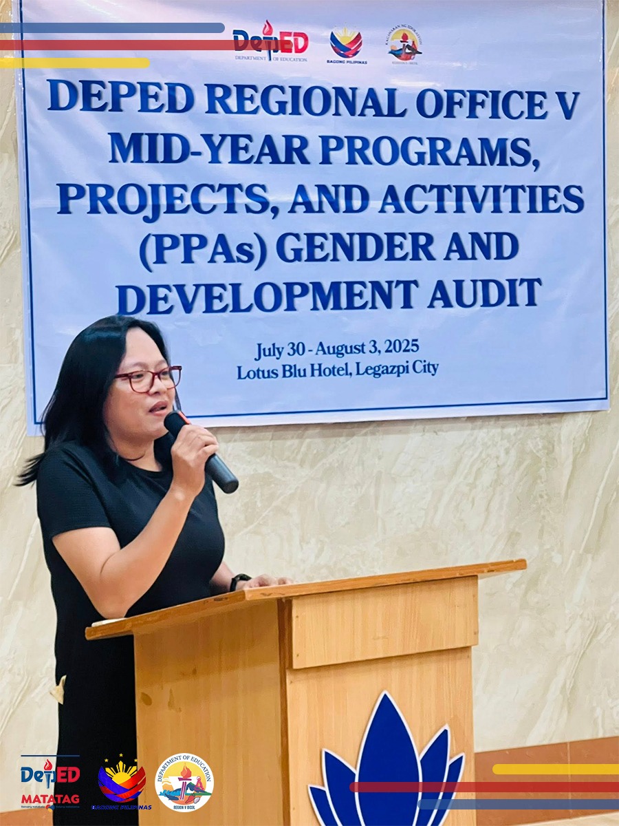 Legazpi City, Albay – In a concerted effort to enhance the implementation and monitoring of Gender and Development (GAD) initiatives, the Department of Education Regional Office V conducted the Mid-Year GAD Programs, Projects, and Activities (PPAs) Audit from July 30 to August 3, 2025 at Lotus Blu Hotel, Legazpi City. The regional activity convened select continue reading : Sorsogon City Admin Officers Take Active Role in 2025 Regional Mid-Year GAD Audit